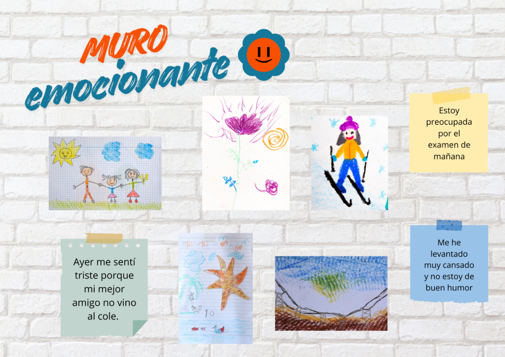 Para ponerla en marcha, se elige una pared o panel central del colegio o instituto y se acondiciona como “Muro de las emociones” o “Muro que emociona”. Puede decorarse con un fondo neutro o con colores alegres, y dividirse en secciones si se desea dar cabida a varios grupos. También puede utilizarse una superficie móvil (paneles de corcho, cartulinas grandes o pizarras magnéticas) si no se dispone de un muro fijo.