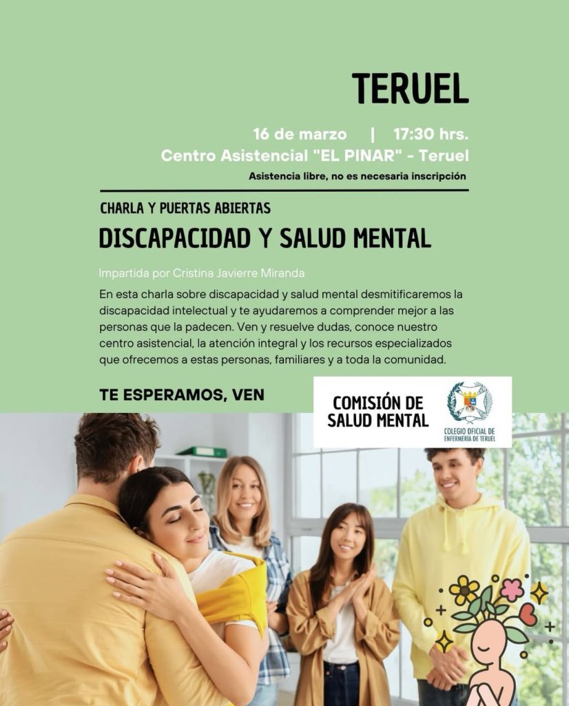 Desde la Comisión de Salud Mental del COE (Colegio Oficial de Enfermería) de Teruel se organiza esta charla abierta a la ciudadanía con el objetivo de sensibilizar y generar espacios de reflexión en torno a la discapacidad y la salud mental. La actividad permitirá conocer el trabajo que se realiza en el centro y resolver dudas sobre estos ámbitos.